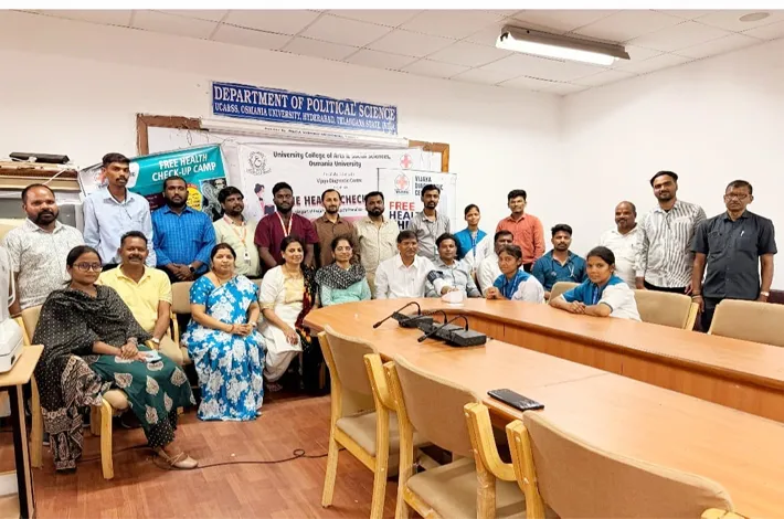 A free medical camp was held on Saturday at Osmania University Arts College under the State Government’s 99-Day Praja Palana – Pragati Plan. The health camp was organized in collaboration with Vijaya Diagnostics for faculty, staff, and university employees.