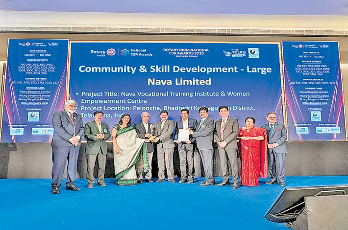 Nava Limited has been honoured with the Rotary India National CSR Award 2025 for the Southern Region at a ceremony held on Friday at Chanchari Pavilion, Bengaluru. The award was presented by the President of FICCI Ladies Organisation (FICCI-FLO) to the company’s representatives, including the President and Unit Head, Company Secretary and Vice President, and General Manager (CSR). The award recognises Nava Limited’s sustained efforts in social development through its various health, education, and livelihood initiatives.