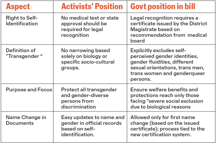 The core controversy revolves around the bill's redefinition of a "transgender person." Earlier provisions allowed individuals to self-identify their gender without medical or state gatekeeping. The amendment narrows this to focus on specific biological variations, intersex conditions, or socio-cultural identities such as hijra, kinnar, aravani, or jogta. It explicitly excludes self-perceived gender identities and certain sexual orientations that do not fit these categories. The government maintains that the changes provide "clarity" to ensure welfare benefits and legal protections reach genuinely vulnerable groups facing severe social exclusion, preventing potential misuse of schemes.