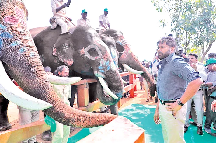 The mahouts showed Pawan Kalyan how the elephants suppress their anger by giving them a special intoxication when they get out of control. The intoxicating injection gun was keenly observed. On this occasion, the Deputy Chief Minister himself fed jaggery to the elephants. Appreciating their performance, he presented his own money as a prize of Rs. 50,000.