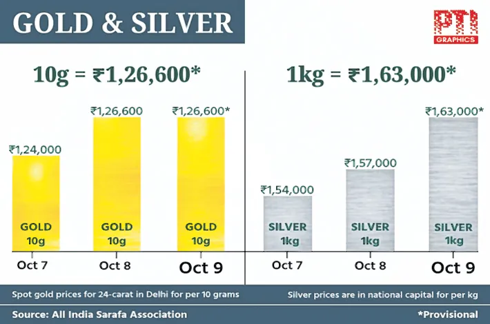 In the local bullion market, gold of 99.9 per cent and 99.5 per cent purity stayed unchanged at their all-time high levels of Rs 1,26,600 per 10 grams and Rs 1,26,000 per 10 grams (inclusive of all taxes), respectively, on Thursday.