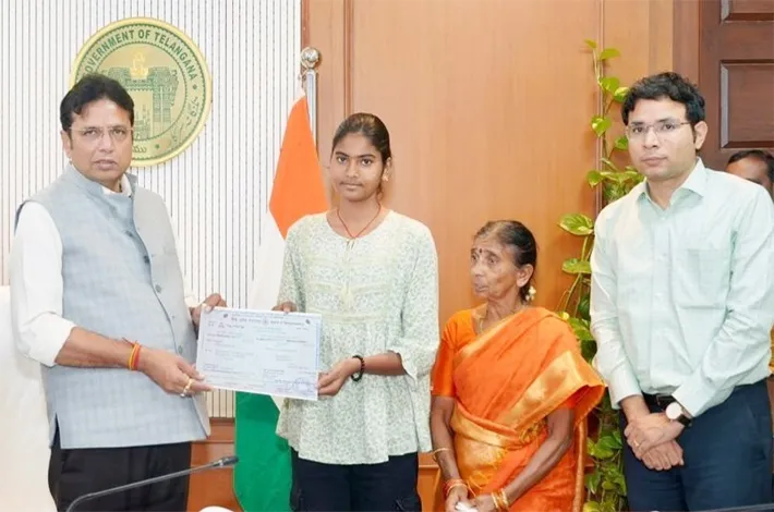 At the Secretariat on Thursday, the Minister handed over a fixed deposit certificate worth Rs 3 lakh to Nagaraja Rao’s daughter Supreethi. The 14-year-old student attended the meeting along with her grandmother Venkata Lakshmi, who is currently taking care of the two children.