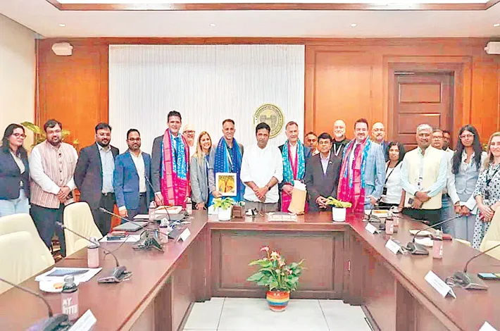 A high-level delegation from Utah, led by David Carlebach, Managing Director and COO of World Trade Center–Utah, met with Minister Sridhar Babu at the Secretariat on Friday. The delegation included experts from sectors such as aerospace, defense, advanced manufacturing, technology, AI-based healthcare, life sciences, clean energy, education, and innovation.