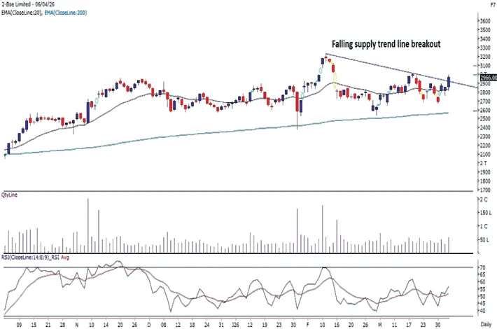 Stock is in an overall uptrend and holding gains in spite of broader market weakness. It has given falling supply trend line breakout on daily chart and formed a strong bullish candle. It is trading above crucial moving averages and every small decline is being bought into. The RSI indicator is positively placed which has bullish implications.