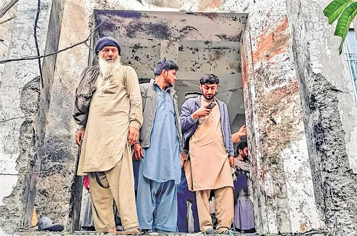 People at the site where a suicide attack took place after the Friday prayers, at Dar-ul-Uloom Haqqania school in Akora Khattak, east of Peshawar. —AFP