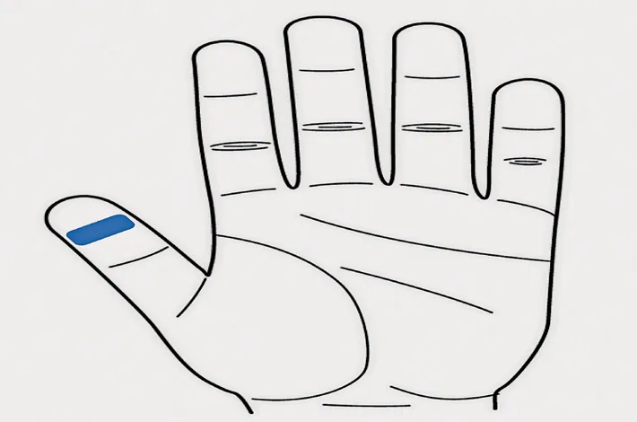 The corresponding points for the eyes are located on the top phalanges of your thumb. Massage the highlighted area (see figure) for five to 10 minutes. Apply two black peppercorn or four mung beans to the point. Use medical adhesive tape to hold them in place. It should be snug. Keep it on for four to six hours. Remove if you feel any discomfort.