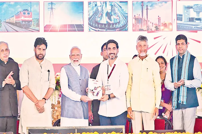 The Prime Minister declared that Andhra Pradesh was racing ahead because “Delhi and Amaravati are working together in perfect coordination.” He credited the past 16 months of joint governance between the Centre and the state for transforming Andhra Pradesh into one of India’s fastest-growing economies.