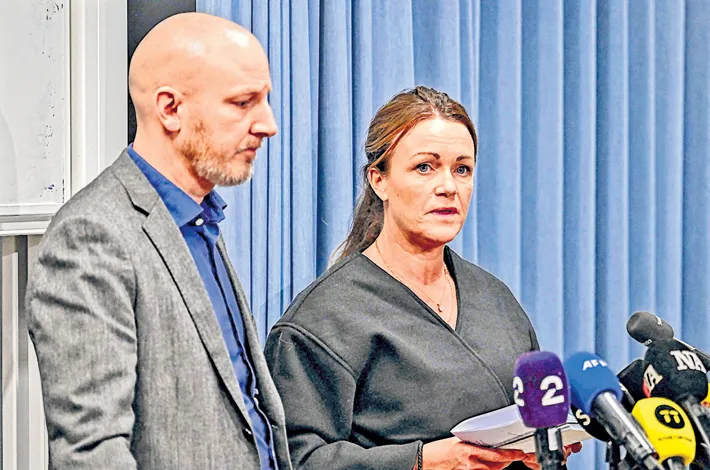 Police chief investigators Kristoffer Zickbauer and Anna Bergkvist at a press conference in Orebro, Swede —AFP