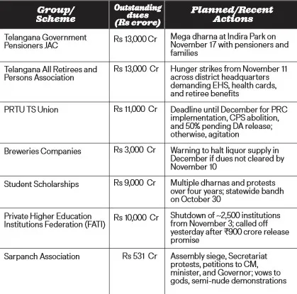 In a wave of discontent sweeping across Telangana, various groups including government employees, pensioners, students, contractors, ASHA workers, anganwadi staff, sarpanch associations, and private educational institutions are voicing their frustration through protests, dharnas, and petitions. The common thread binding these demonstrations is the state government's failure to clear long-pending dues, amounting to tens of thousands of crores, which has accumulated over years and is now impacting livelihoods.
