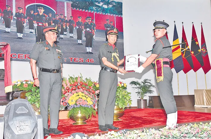 The Award Distribution Ceremony for Officer Cadets of the Technical Entry Scheme (TES) course No. 46 was held on Saturday at the Cadets Training Wing of the Military College of Electronics & Mechanical Engineering (MCEME), Secunderabad. A total of 23 cadets, including two from the Royal Bhutan Army, were honoured.