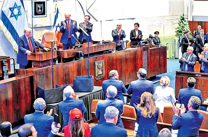 US President Trump on Monday was greeted with a thunderous applause and a standing ovation by Israeli lawmakers as he arrived at a special session of the Knesset following the release of 20 hostages by Hamas, earlier in the day.