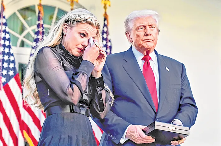 Erika Kirk, the late activist's widow and current CEO of Turning Point USA, accepted the nation's highest civilian honour on his behalf. A military aide introducing the award said the United States honours Kirk as "a martyr for truth and freedom." Trump, who returned from the Middle East around 3 am on Tuesday, told attendees, "I was going to call Erika and say, 'Erika, could you maybe move it to Friday?'" He added that it was a "definite" decision to make it back for the event, which coincided with what would have been Kirk's 32nd birthday.