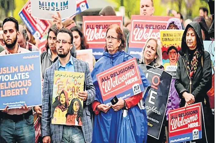 File photo of protesters outside the US Supreme Court as the court considered President Donald Trump's travel ban