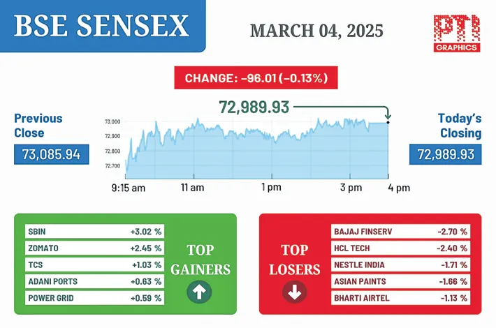Sensex below 73,000, Nifty records longest daily fall since 1996